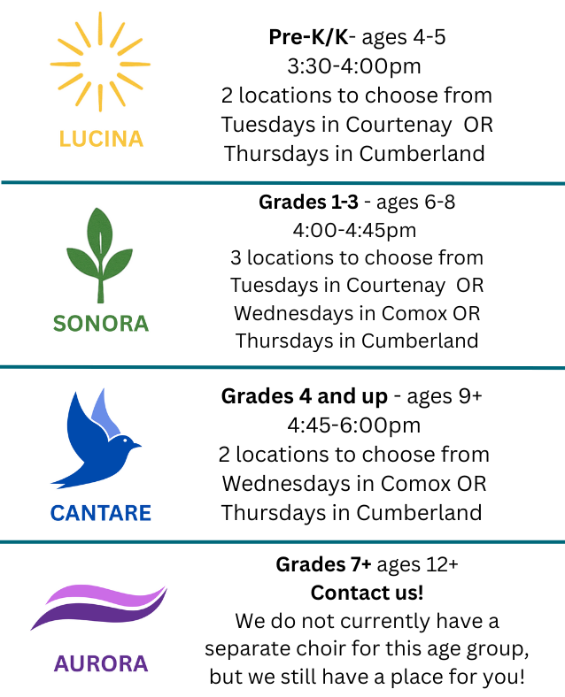 For more detailed information on our choirs please go to the “Join Us” top tab!